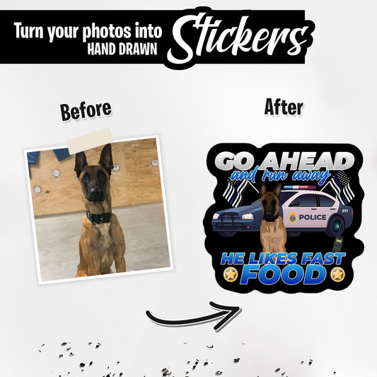 Go Ahead and Run He Likes Fast Food K9 Police Sticker Personalized
