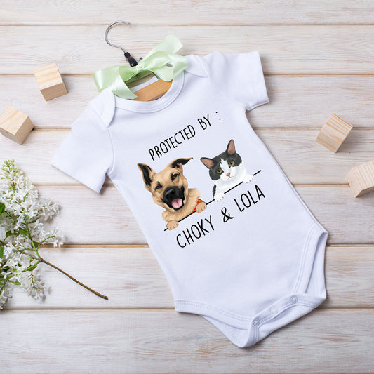 Custom Protected By Pets Baby Bodysuit
